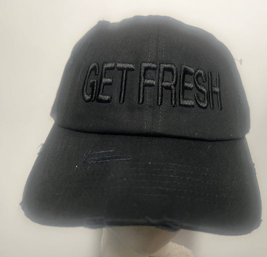 Black On Black Embroidery GET FRESH OR GET LOST Dad Hat