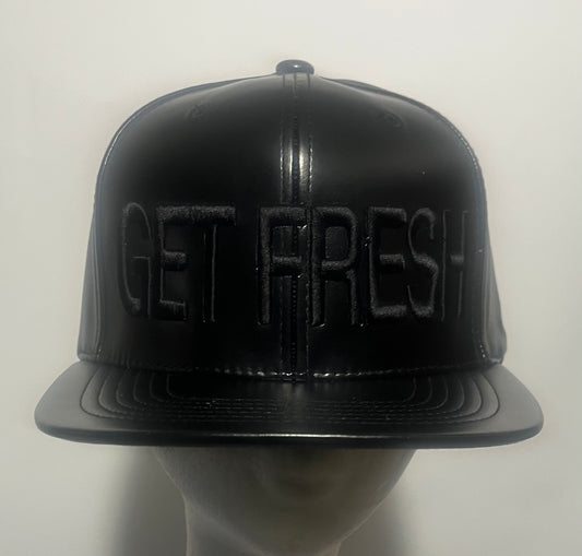Black On Black GET FRESH OR GET LOST Faux Leather Hat