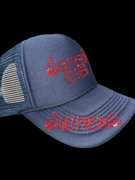 Dark Blue GET FRESH OR GET LOST Hat With Red Rhinestone Embroidery