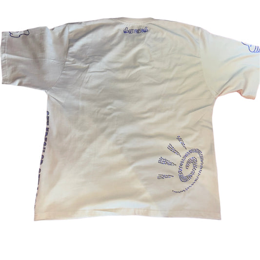 Cream GET FRESH OR GET LOST Two-Piece Set With Blue Rhinestone Embroidery