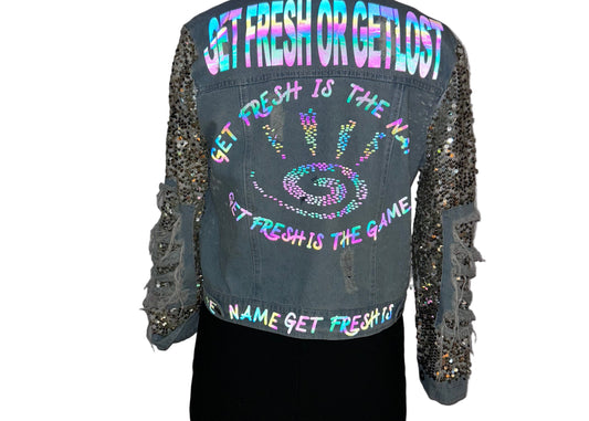 Light Blue GET FRESH OR GET LOST Jean Jacket Inverted With Colored Reflector