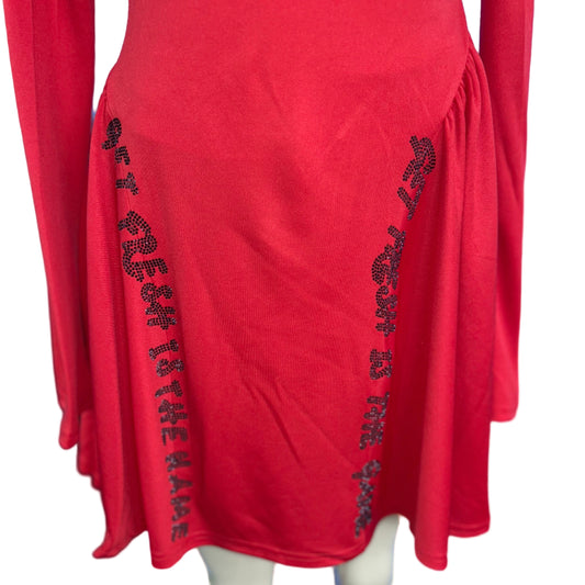 Red GET FRESH OR GET LOST Dress With Black Rhinestone Embroidery