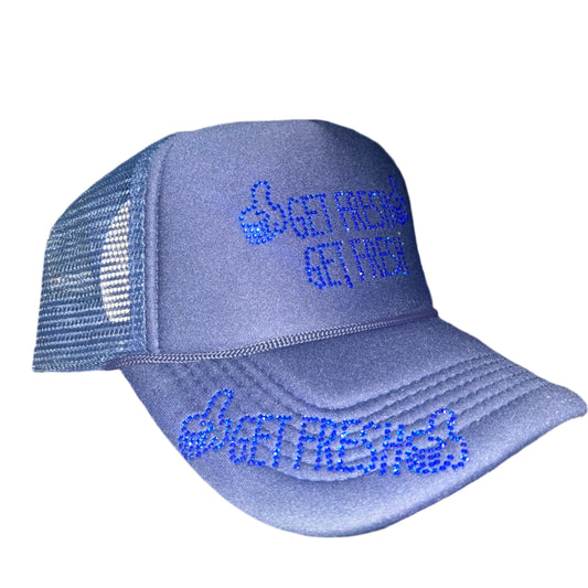 Royal Blue GET FRESH OR GET LOST Hat With Blue Rhinestone Embroidery